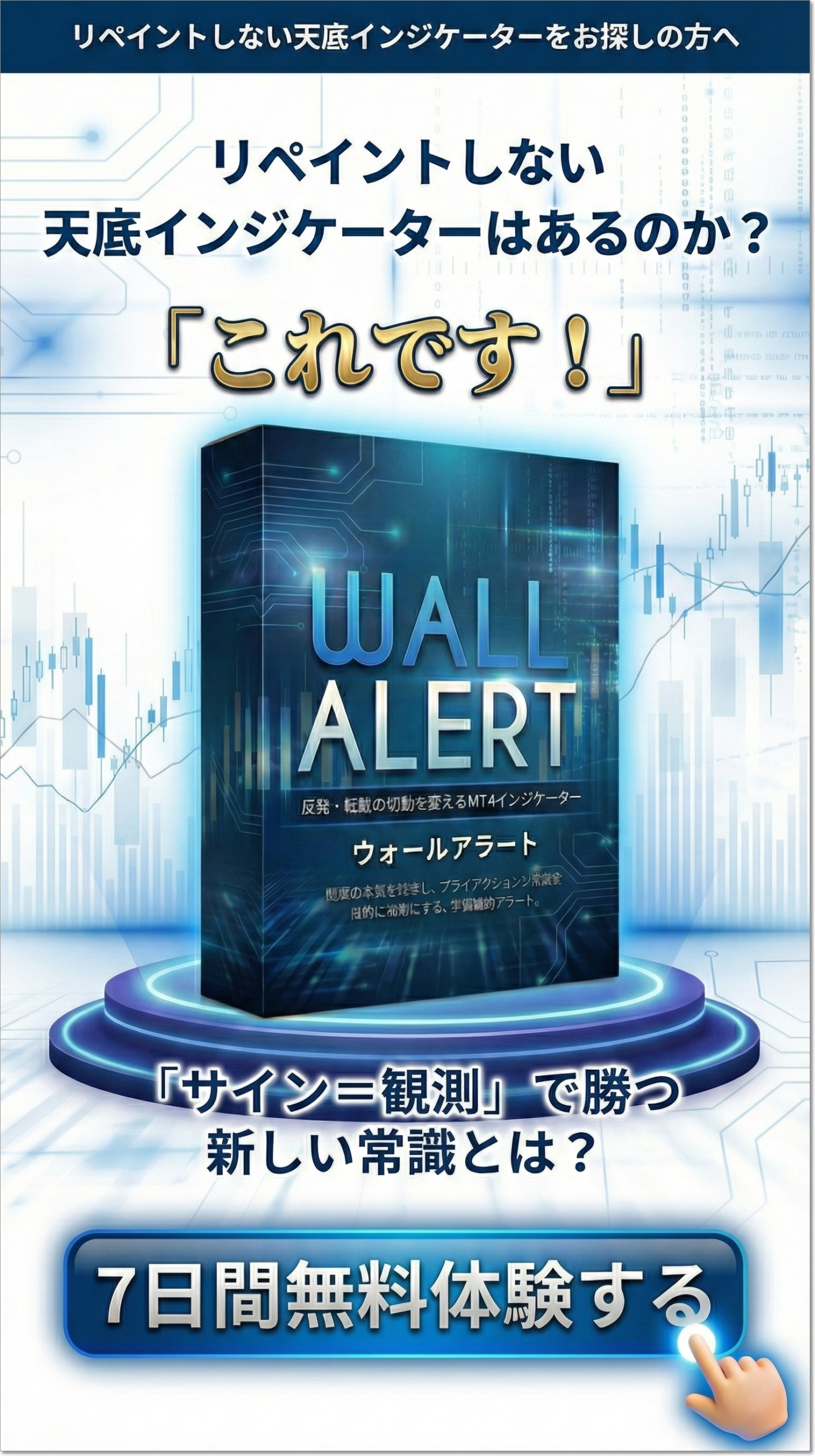 この天底インジケーターは「エントリー指示機」ではなく、「観測の合図」を知らせるためのツール(ソナー)として設計されているからです。
